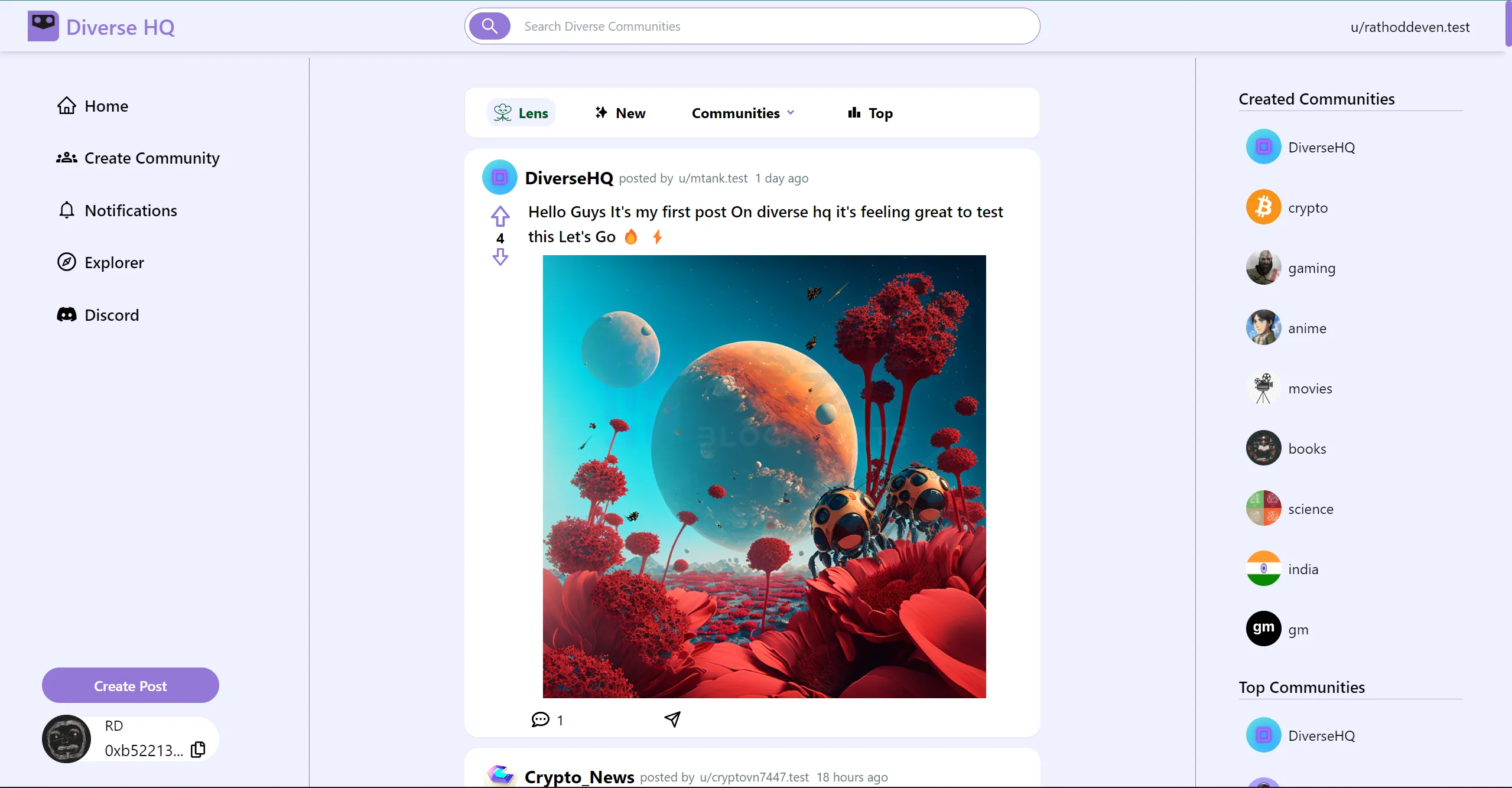 Diverse 是一个用于构建、管理和发展社区的 web3 社交平台,专注于微型创作者经济并帮助创作者找到他们的受众。Diverse 旨在构建下一个 Reddit,用户和创作者可以轻松地增加他们的受众和粉丝。使用 Diverse 时,将基于 lens 协议的去中心化社会结构,用户的社交关系将保留在区块链上。可以出售任何东西,包括电子书、博客、矢量艺术、图形、3D 内容、电影和图像。