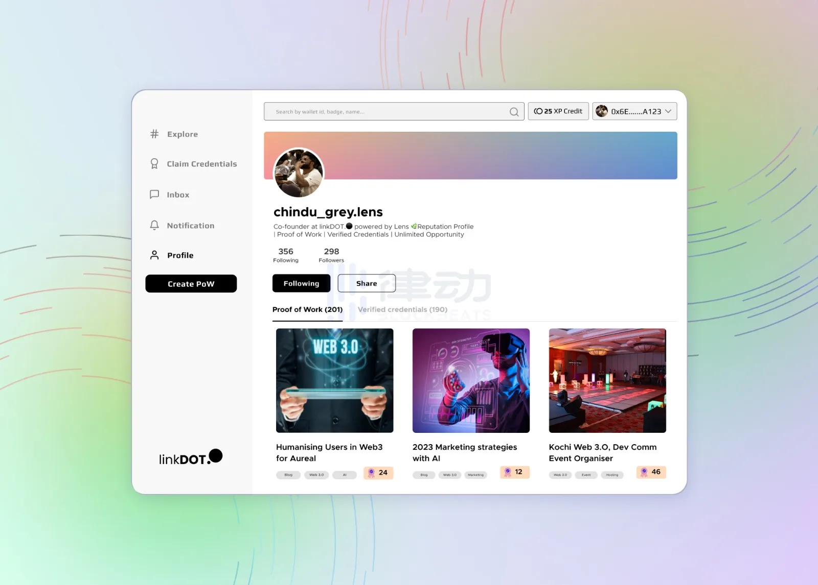linkDOT 将自己定位于 web3 人才的终极在线投资组合工具,现已上线 LensProtocol。通过 linkDOT,用户可以在一个地方记录所有经过验证的证书和工作证明,并让社区通过链上同行证明为用户的技能担保。现在通过集成 Lens 协议,用户可以通过创建尖端的产品组合来展示自己的工作证明和同行验证,从而将用户的 Web3 职业生涯提升到一个新的水平。